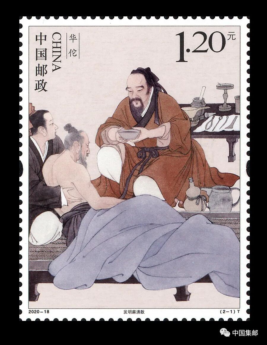 中国邮政定于2020年8月19日发行《华佗》特种邮票1套2枚,小型张1枚。详情如下: