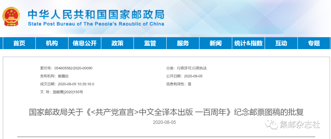 据国家邮政局官网消息,将于2020年8月22日发行的《<共产党宣言>中文全译本出版一百周年》纪念邮票图稿已确认。该纪念邮票1套1枚。邮票内容为:《共产党宣言》中文全译本出版一百周年。