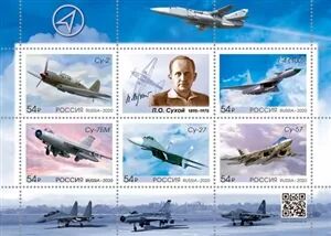 2020年7月22日,俄罗斯邮政为飞机设计大师苏霍伊(P.O. Sukhoi ,1895–1975)诞生125周年发行一套五枚纪念邮票。苏霍伊是苏联最有成就的飞机设计师之一,苏霍伊设计局的创始人。他担任总设计师达33年之久,一生共主持设计了50多种新飞机,其中34种进行了试飞,为苏联航空事业的发展作出了巨大的贡献。