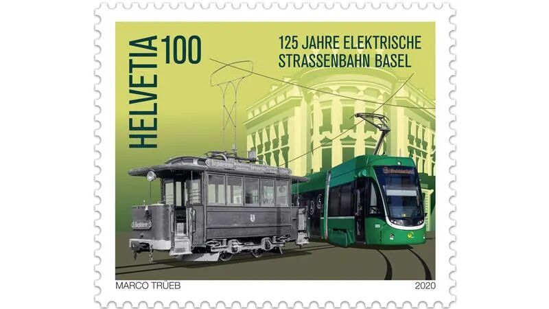 2020年7月24日,瑞士邮政为巴塞尔电车开通125周年发行一枚纪念邮票。1895年5月份,巴塞尔有轨电车正式取代公共马车,从此成为市区的主要交通工具,因节能、环保、快捷、方便,至今仍深受市民和游客的青睐喜欢。