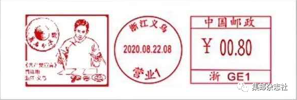 经中国邮政集团有限公司批准,义乌邮政分公司将于8月22日启用“《共产党宣言》首译地”邮资机宣传戳一枚。图案为正在翻译《共产党宣言》的陈望道。