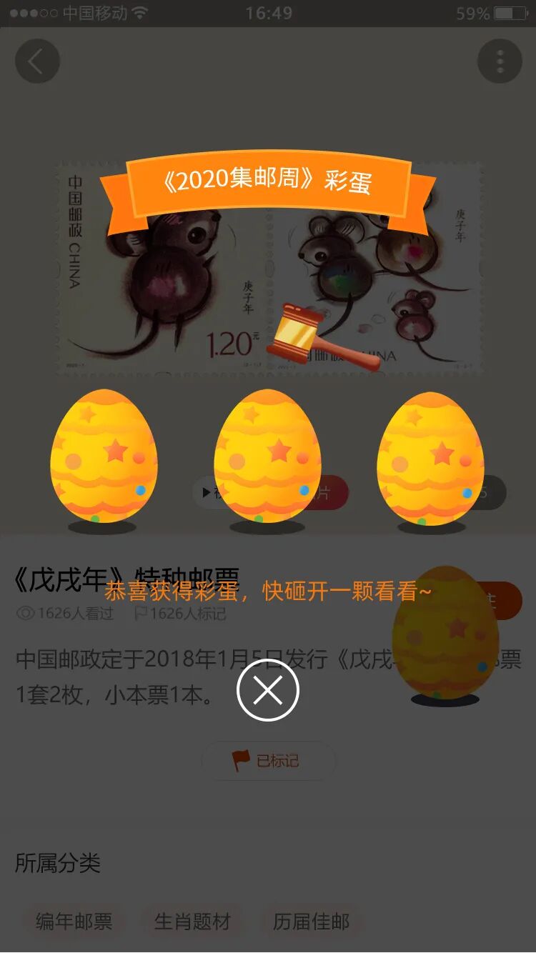 使用中国集邮邮票百科微信小程序每天扫描欣赏不同主题邮票将有机会赢得礼品。