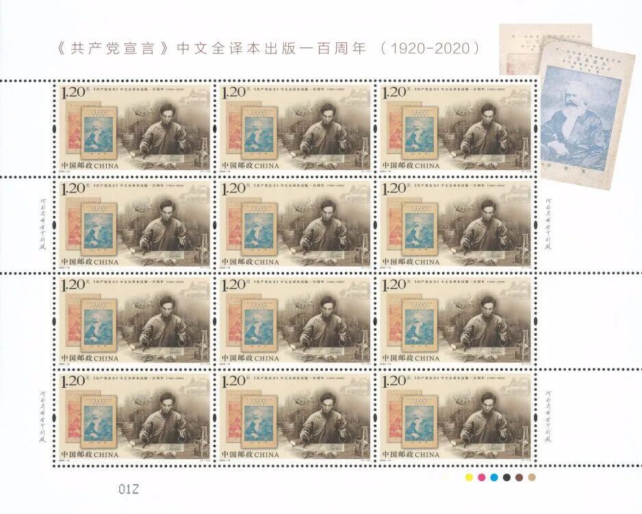 中国邮政定于2020年8月22日发行《<共产党宣言>中文全译本出版一百周年》纪念邮票1套1枚。详情如下: