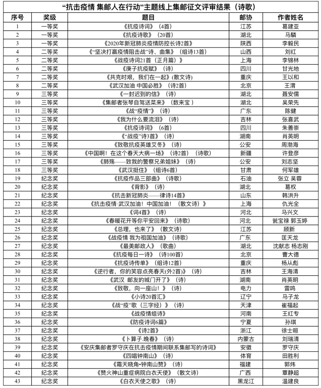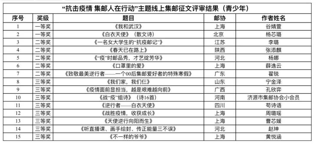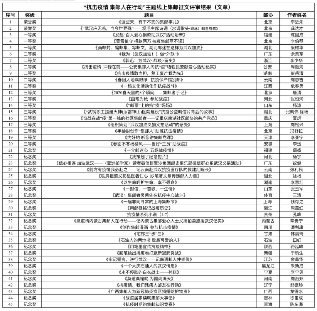 “抗击疫情 集邮人在行动”线上征文获奖名单公布