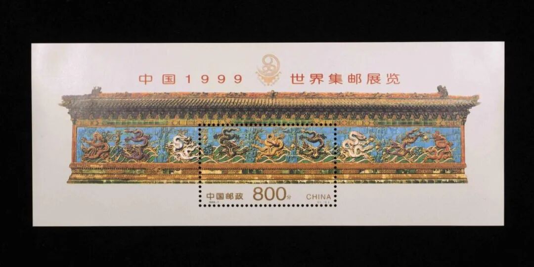 北海公园是我国现存最悠久、保存最完整的皇家园林之一,“让我们荡起双桨,小船儿推开波浪……”,这首优美动听的歌曲正是描绘北海仙境般的景色。北海公园曾多次登上我国的邮资票品,1965年发行的特15《首都名胜》中的第2枚和1979年普20《北京风景图案普通邮票》中的第3枚均表现了北海公园最具标志性的白塔。1999年发行的《中国1999世界集邮展览》小型张邮票是以北海公园的“九龙壁”为主图设计的。北海九龙壁是中国现存三座九龙壁中最有特色的一座皇家龙壁,建于乾隆年间。它全部由彩色琉璃砖砌成,色彩明快,形态逼真。1999年中国首次承办世界级集邮展览,以九龙壁作为主图,一是寓意中华民族是龙的故乡,二是邮展举办的次年即是龙年也是新千年,喜迎龙年到来。