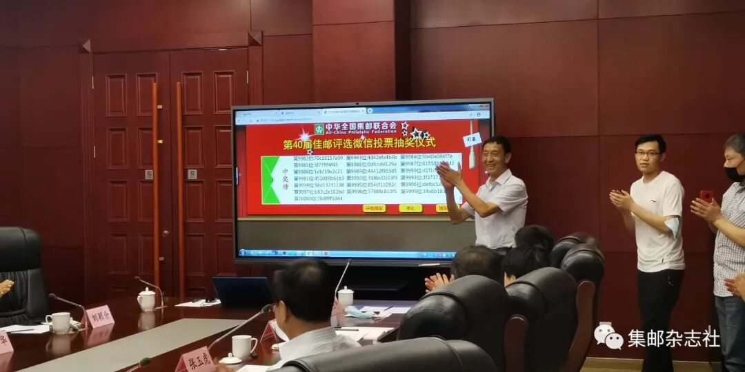 8月27日,新一届全国最佳邮票评选委员会在京成立,国家邮政局副局长、中华全国集邮联合会第八届理事会会长戴应军担任主任,中华全国集邮联合会常务副会长赵晓光、中国邮政集团有限公司副总经理康宁担任常务副主任。全国最佳邮票评选委员会听取了第40届全国最佳邮票评选活动和颁奖仪式筹备情况汇报,对本届佳邮评选活动前期组织工作和颁奖活动筹备工作给予了充分肯定。会议审议通过了最佳邮票评选结果,研究确定了颁奖仪式方案,现场抽取了手机短信、网络和微信投票中奖者。