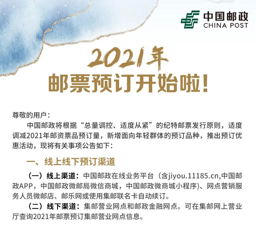 2021年邮票预订9月1日全民开启