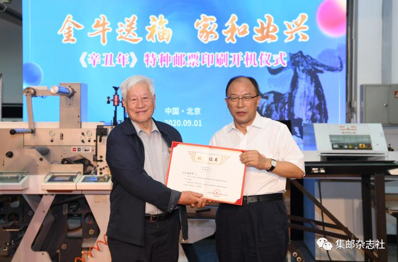 2020年9月1日上午,由中国邮政集团有限公司主办的“金牛送福 家和业兴——《辛丑年》特种邮票印刷开机仪式”在北京邮票印制局举行。中国邮政集团有限公司党组书记、董事长刘爱力,中央美术学院院长、中国美术家协会主席范迪安与四轮生肖牛邮票创作者——著名画家姚钟华、著名平面设计师陈绍华、山东非物质文化遗产代表性传承人齐秀花共同为《辛丑年》生肖邮票图稿揭幕,并启动《辛丑年》特种邮票印制,宣告生肖牛年邮票正式投入生产。