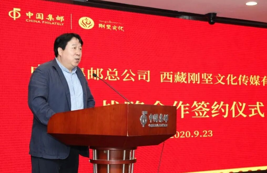 韩国辉表示,十分荣幸能见证签约仪式,这标志着双方合作开启了新征程。第一,助力文化援藏工程。中央第七次西藏工作座谈会指出,要全面贯彻新时代党的治藏方略,建设团结富裕文明和谐美丽的社会主义现代化新西藏。感谢集邮总公司积极响应党中央支持西藏、支援西藏政策,用实际行动践行文化援藏。第二,围绕主题深入合作。十一世班禅大师对双方建立战略合作关系非常支持,对王鲁湘教授提出的“六合集祥”主题给予充分肯定。在班禅大师的加持之下,双方根据这一主题开展合作定能取得开门红。第三,品牌协同传承文化。文化是品牌的灵魂,中华优秀传统文化是中华民族最深厚的文化软实力,也是中国文化品牌根植的丰厚沃土。集邮总公司以邮票为媒介深耕中华传统文化,入选文化部海外中国文化中心“中国文化周”标志性品牌,进入亚洲品牌500强并荣膺“一带一路文化品牌金奖”,可谓硕果累累。刚坚文化近年来与故宫博物院、承德避暑山庄联合举办大展,与中国建设银行联合开发文化产品,产生了良好的社会反响,为促进藏汉文化艺术交流发挥了重要作用。刚坚文化此次与集邮总公司携手,将深度整合和利用双方资源,提升战略协同层次和水平,实现传统文化挖掘、传承和推广的新跨越。