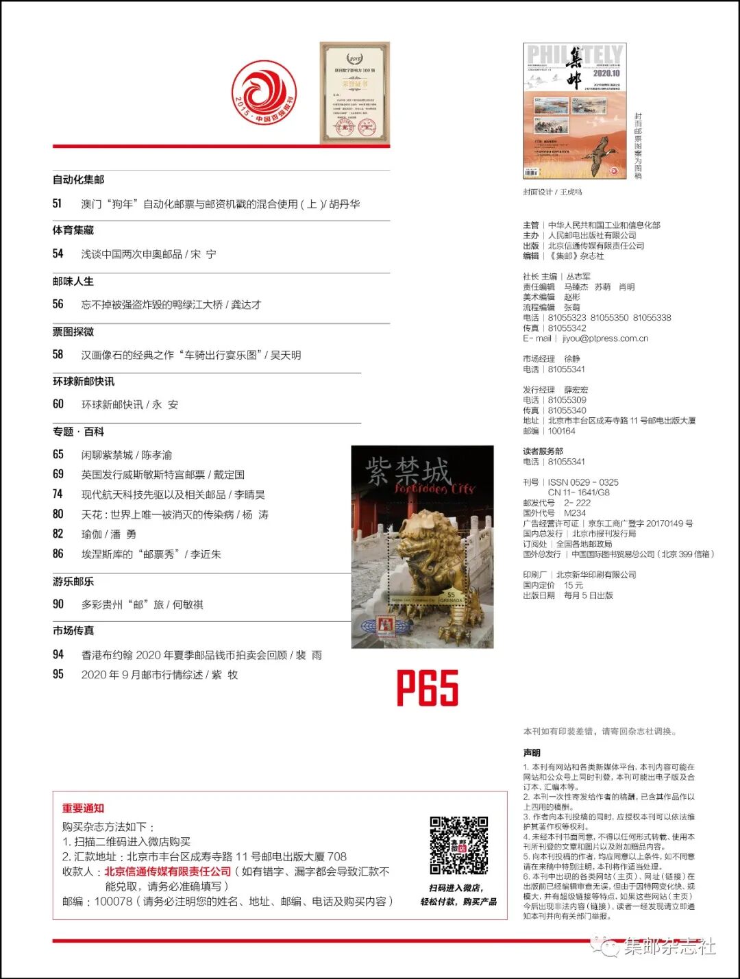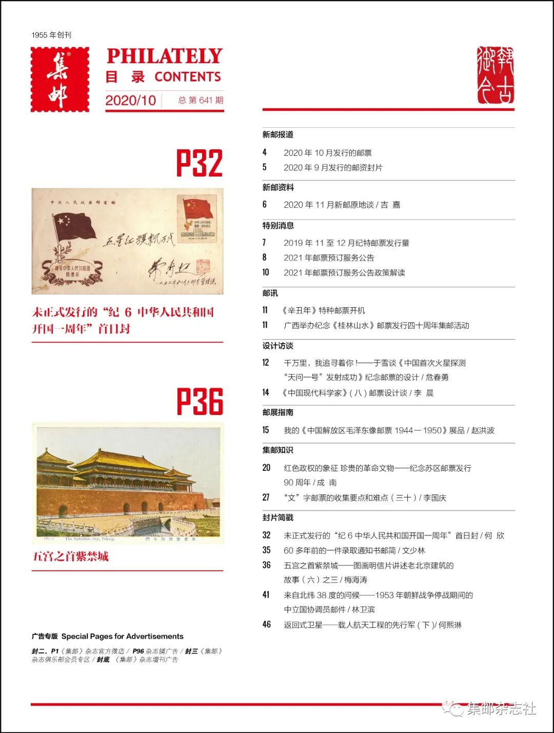 2020年第10期《集邮》杂志已经下厂印制,今天先为大家介绍一下这期杂志的精彩内容。