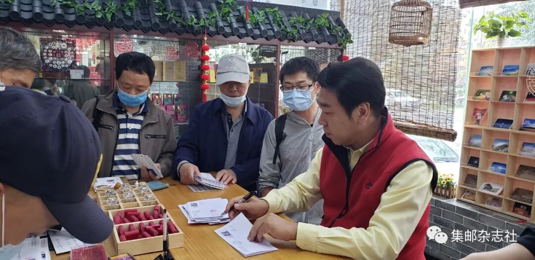 今早,邮局尚未开门,就有集藏爱好者来到万寿路邮局排队,等待加盖“熊猫奔月”邮资机宣传戳。上午,机戳设计者刘中也来到万寿路邮局并为现场的集藏爱好者签名。刘中还通过《集邮》杂志微信公众号表达了对广大集藏爱好者的双节祝福。