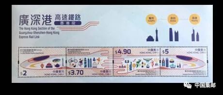 广深港高铁香港段于2018年9月23日通车,香港邮政发行一套4枚特别邮票,以高铁列车的夺目颜色和流线设计贯穿4枚邮票,并分别展示广州、深圳和香港的特色。邮票上有列车和代表广、深、港三地文化和地标的图案。其中,列车中段化成两只牵着的手,象征香港与内地在经济和其他方面的交流,将随着广深港高铁香港段通车后更为密切,携手开拓新机遇。