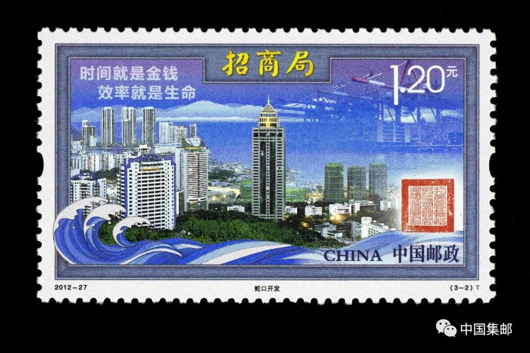 1979年,招商局在深圳蛇口创办了中国第一个对外开放的工业园区。2012年中国邮政发行了《招商局》特种邮票一套3枚。第2枚名为“蛇口开发”,画面主体为蛇口工业园区的新貌。背景里“时间就是金钱,效率就是生命”的标语牌由招商局蛇口工业区、招商银行和平安保险等企业的创始人袁庚先生提出。这句标语在当时的政治背景下可谓突破思想束缚,有催人奋进的力量,曾获得小平同志的首肯,被称为“冲破旧观念的第一声春雷”。招商局蛇口工业区在用工制度、薪酬分配、住房制度、社会保险制度,工程招标制度、企业股份制等方面进行了多项改革和创新,是改革开放的探路者。蛇口工业区成为我国改革开放历史变革的一个缩影。