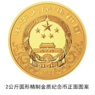(二)2公斤圆形金质纪念币为精制币,含纯金2公斤,直径110毫米,面额20000元,成色99.9%,最大发行量50枚。