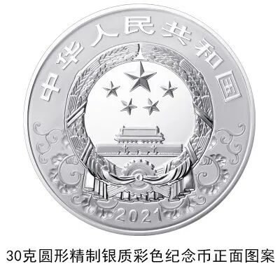 (十五)30克圆形银质彩色纪念币为精制币,含纯银30克,直径40毫米,面额10元,成色99.9%,最大发行量200000枚。