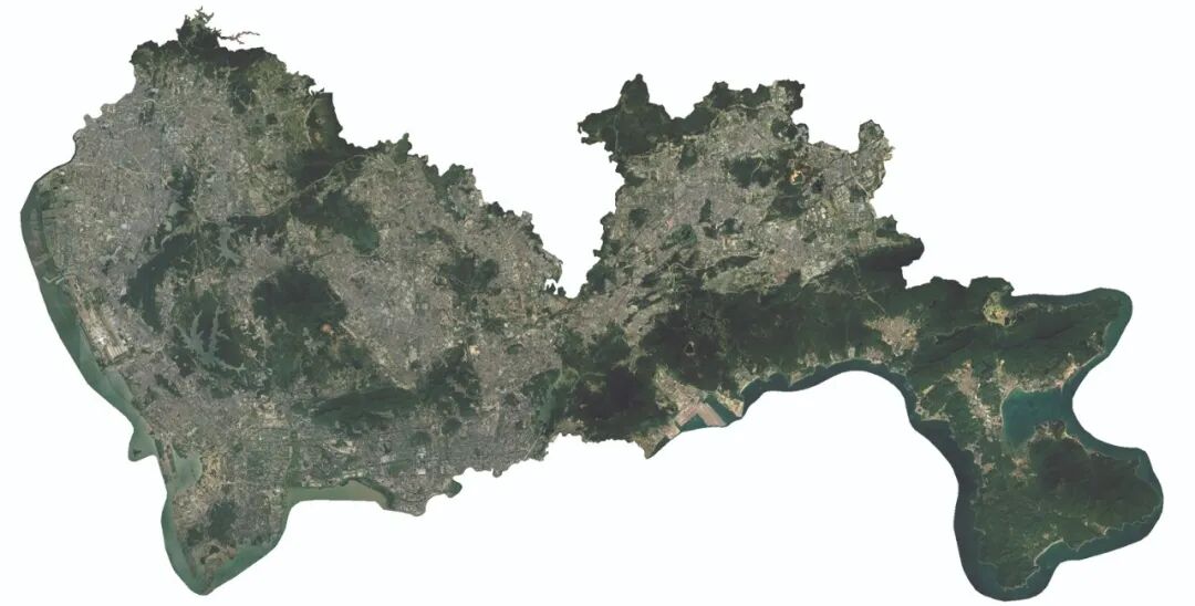 深圳市依山临海,海洋水域总面积1145平方公里,辽阔海域连接南海及太平洋,海岸线总长260.5公里,拥有大梅沙、小梅沙、西冲、桔钓沙等知名沙滩,大鹏半岛国家地质公园、深圳湾红树林、梧桐山郊野公园、内伶仃岛等自然生态保护区。境内流域面积大于1平方公里的河流共有362条,分属12大流域。深圳西部属粤中丘陵平原区,东部为粤东沿海丘陵区。莲花山余脉东西向横贯东南部,直达海岸(图1,卫星影像图)。