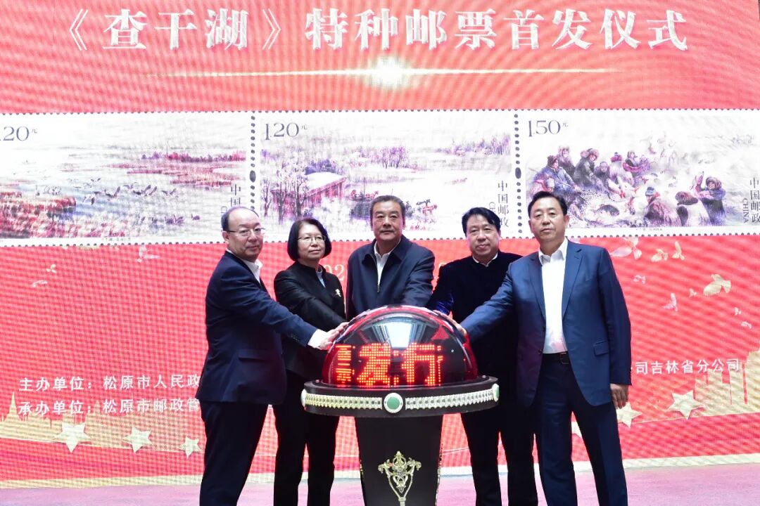 10月18日,《查干湖》邮票首发仪式在吉林省松原市举办。在首发仪式上,松原市委副书记、市长于强,吉林省邮政管理局党组书记、局长巨登照,中国邮政集团有限公司吉林省分公司党委书记、总经理李革平分别致辞。中国邮政集团有限公司吉林省分公司集邮与文化传媒部总经理任艳明宣读邮票发行通告。中国集邮总公司党委书记、总经理任永信,吉林省委宣传部副部长陈雨点与于强、巨登照、李革平共同为邮票揭幕,首发活动由松原市委宣传部常务副部长李丽娜主持。