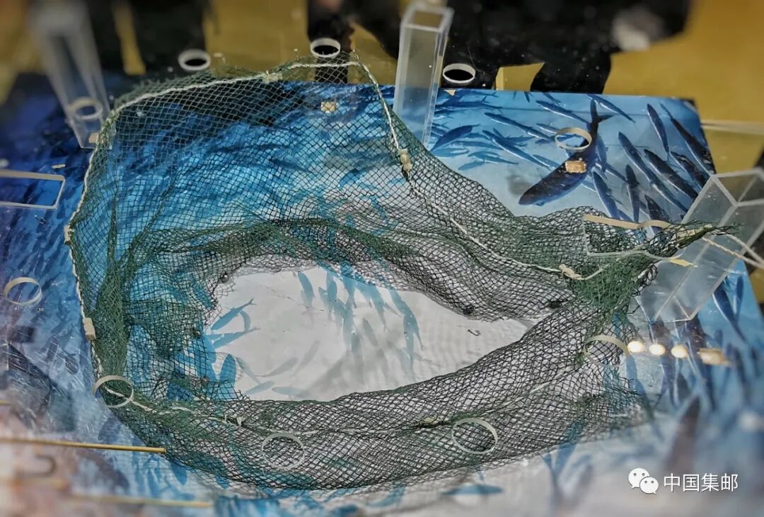 第三枚名为“冰湖腾鱼”,表现冬捕开网后,冰封的湖面上人头攒动,一片热闹景象。近处鱼跃而出、湖面沸腾,远处高头大马拉动绞盘,呈现出一幅鱼跃人欢冬捕忙的丰收景象。