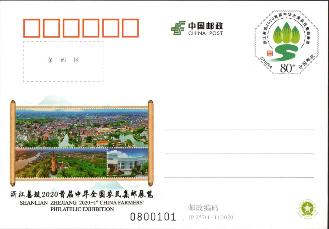 中国邮政定于 2020 年 10 月 31 日发行《浙江善琏 2020首届中华全国农民集邮展览》纪念邮资明信片 1 套 1 枚。详情如下: