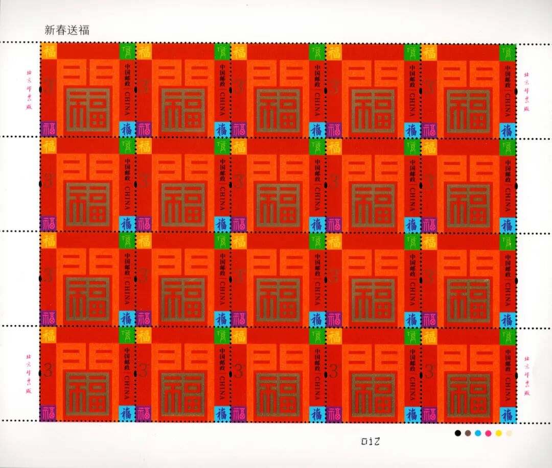 注:采用“国裕家康”和“新春送福”邮票印制小全张 1 枚,规格为 121×190 毫米。边饰福字作者:韩美林。小全张 专用于 2021 年中国邮政贺年有奖产品(祝福卡型 15 元)。