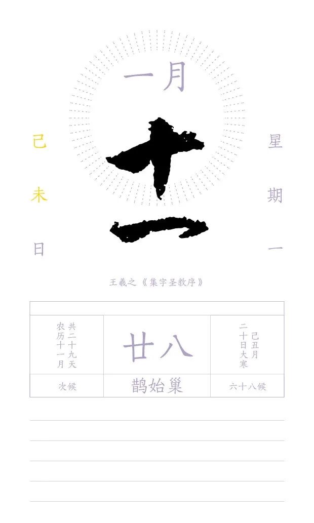 日期字体均集自历代经典书法精品,或娟秀灵动如游龙惊凤,或泼墨淋漓似滂沱如注。