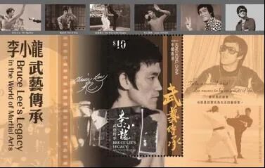 11月27日,发行《李小龙 – 武艺传承》邮票一套6枚,同时推出小型张1枚。邮票图案及面值分别为: 截拳道(2元)、唐山大兄(2.60元)、精武门(3.40元)、猛龙过江(3.70元)、死亡游戏(4.90元),以及悟学(5元)。小型张面值10元。
