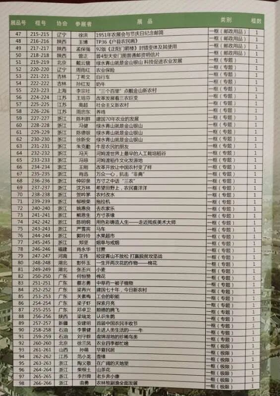本次展览以“决胜全面小康社会 绿水青山就是金山银山”为主题,115部283框展品来自全国26个省、自治区、直辖市集邮协会和行业邮协,展览主题鲜明,“农味”十足,时代特色突出。展品全部为农业农村题材,其中半数展品作者为农民或农村基层工作者。