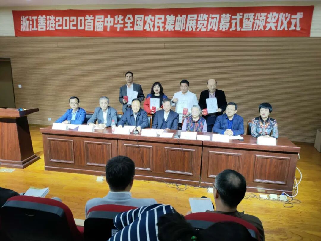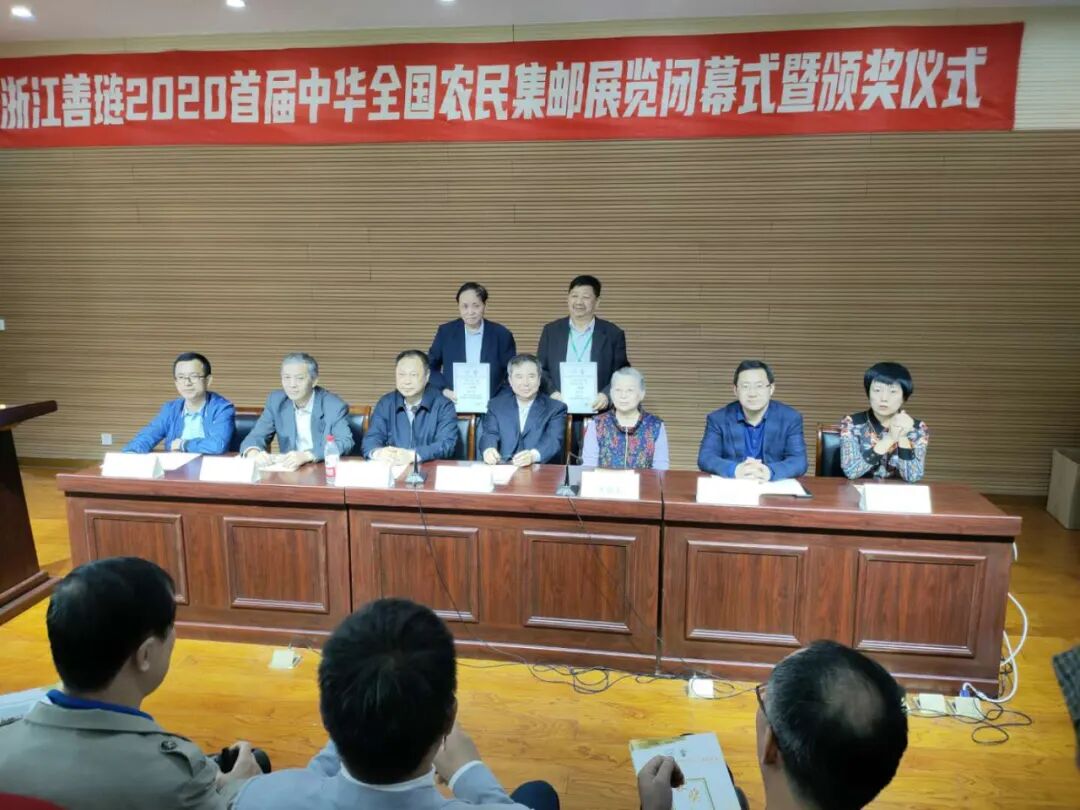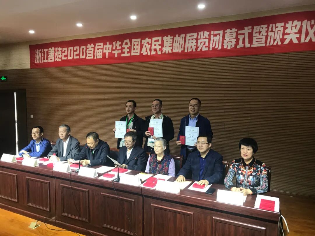 11月2日,浙江善琏2020首届中华全国农民集邮展览闭幕式暨颁奖仪式在善琏学校举行,全国集邮联常务副会长赵晓光、全国集邮联副会长及邮展评委会主任焦晓光、全国集邮联副秘书长李爱军、全国集邮联副秘书长唐清辉、浙江省集邮协会副会长及省人大农业与农村委员会原副主任洪建新、浙江省集邮协会秘书长鲁鸣、善琏镇人民政府镇长沈敏勇出席了闭幕式。来自27个省、自治区、直辖市及全国行业集邮协会的征集员、本次邮展的评委、部分邮集作者、集邮爱好者等朋友们共同见证邮展颁奖仪式。