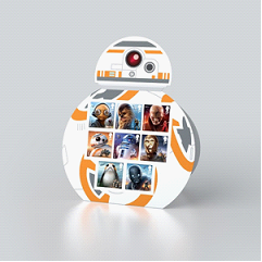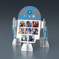 电影中可爱的BB-8机器人和机智、勇敢的R2-D2机器人也都被设计成可以放在桌上的摆件,展示当年发行的一套八枚星战邮票。