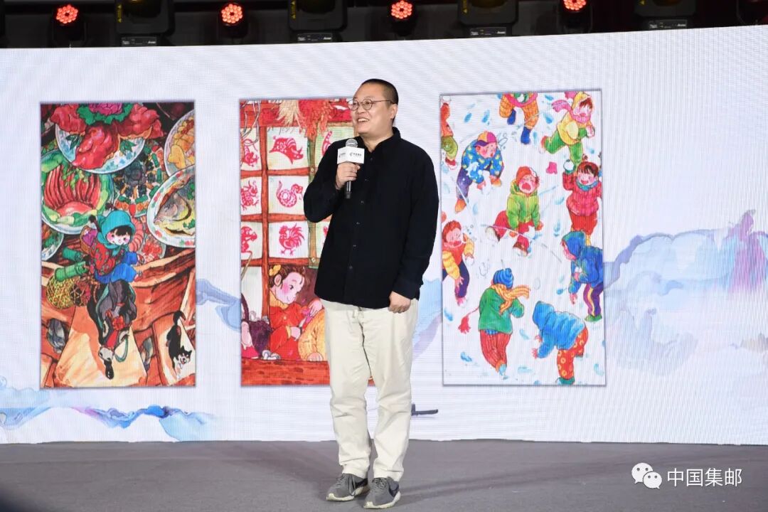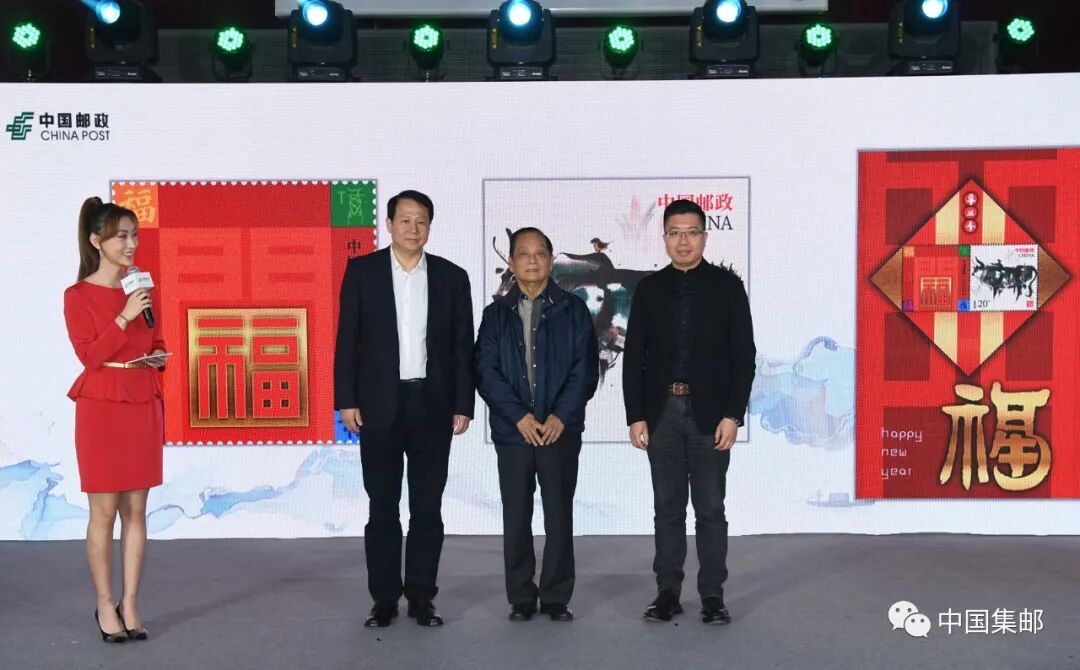 中国邮政集团有限公司党组成员、副总经理王俭,著名艺术家韩美林,邮票印制局设计总监王虎鸣,清华大学美术学院博士生导师陈楠教授,南开大学东方艺术系副教授张旺,中国工艺美术协会会员武世宁、著名绘本画家景绍宗,明信片文化创意大赛获奖者段雅婕、潘振磊及中国邮政集团有限公司相关部门负责同志出席。王俭发表致辞,并与韩美林及与会嘉宾分别为贺年专用邮票小全张及明信片揭幕,与会嘉宾还分享了设计理念。
