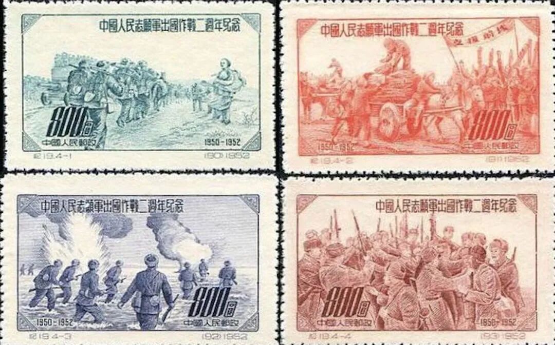 原邮电部在1952年发行了《中国人民志愿军出国作战二周年纪念》邮票,以此纪念中国人民志愿军抗美援朝保家卫国的英雄壮举。