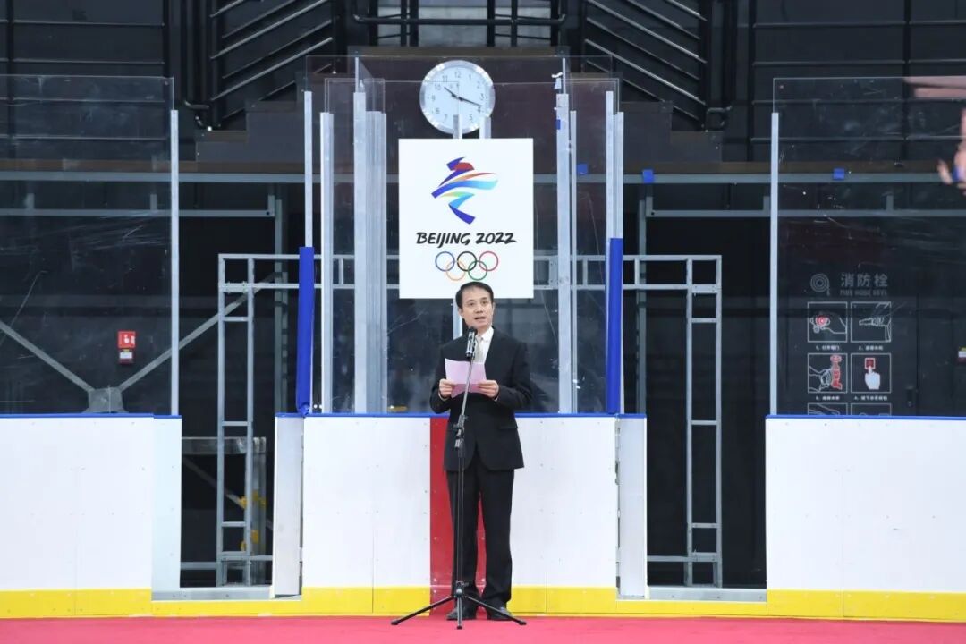原男子冰球国家队队员、前女子冰球国家队主教练姚乃峰为第五枚“冰球”揭幕