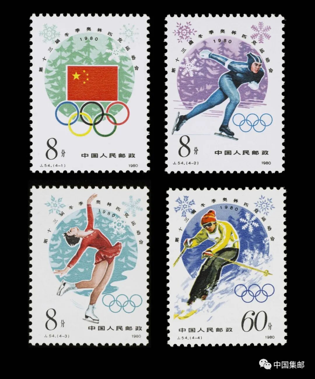 中国重返奥林匹克大家庭后首次参加的奥运会是1980年在美国普莱西德湖举行的第十三届冬奥会。此次冬奥会开幕当天,中国邮政发行了J.54《第十三届冬季奥林匹克运动会》邮票,这是我国发行的第一套奥运会邮票。