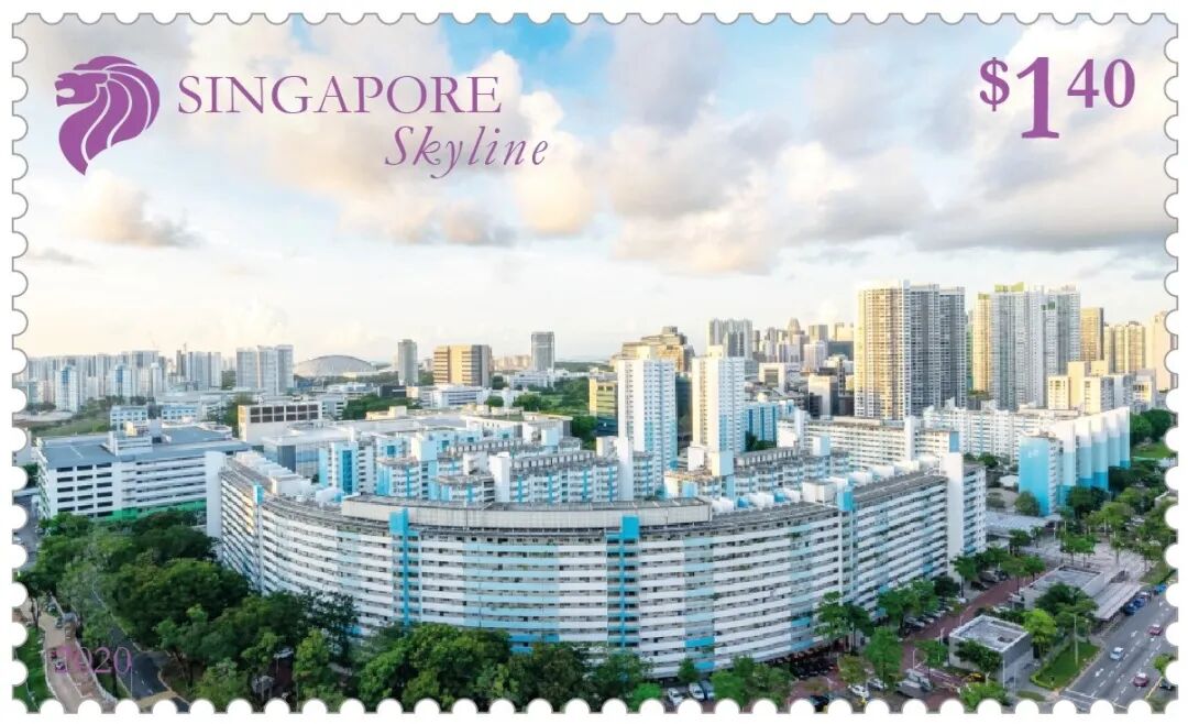 另一枚邮票票幅为49×29.85毫米,图案为新加坡长度最长的公共住房公寓——黄埔西34号组屋。这栋组屋建于1971年,每层拥有46套公寓,走廊长达320米。遍布新加坡各地、由新加坡建屋发展局营建的公共住房(俗称“组屋”)是大部分新加坡人的住所。不同年代建造的组屋及其具有时代特征的设计也是新加坡由一个第三世界国家发展成为发达国家的历史见证。