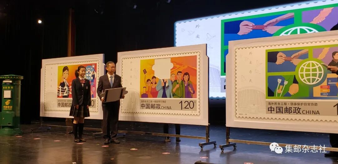 外交部领事司工作人员首先为到场嘉宾与同学介绍了领事保护与协助工作的知识。与会嘉宾以拼图的方式为《海外民生工程》邮票揭幕。《海外民生工程》邮票全套3枚,图案分别为领事便民服务、领事保护日常协助、祖国在你身后。该套邮票由方军设计。北京市邮政分公司还在活动现场设立临时邮局,方便参与活动的嘉宾与师生寄发今天的邮品。