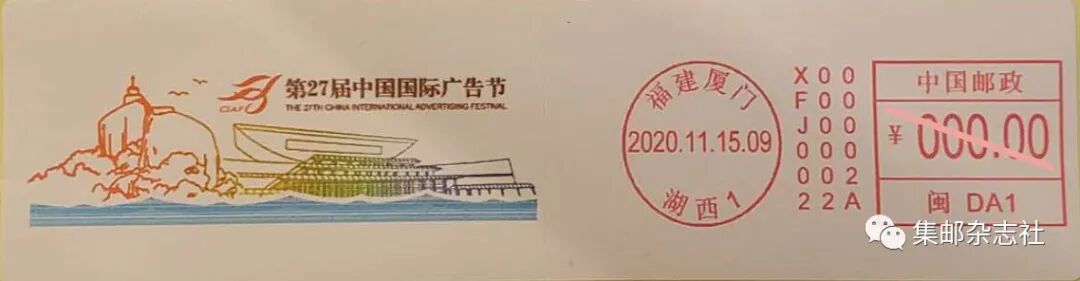 在中国邮政的展位上,向参加国际广告节的众多客户展示了明信片创意大赛、中邮智融平台、速递易、个性化邮票及明信片现场制作等特色鲜明的服务业务。在本届国际广告节上,中国邮政还通过在展场临时邮局的“第27届中国国际广告节”邮资机宣传戳启用等活动展示了邮资机宣传戳业务的服务特点。