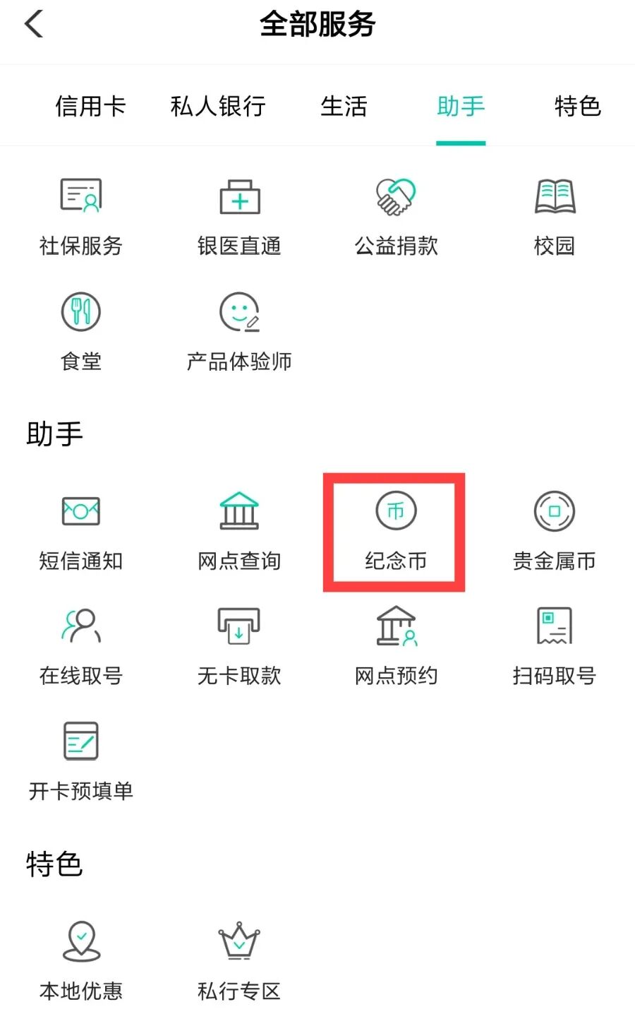 第三步:拉到最底下,点击“纪念币”按钮即可!