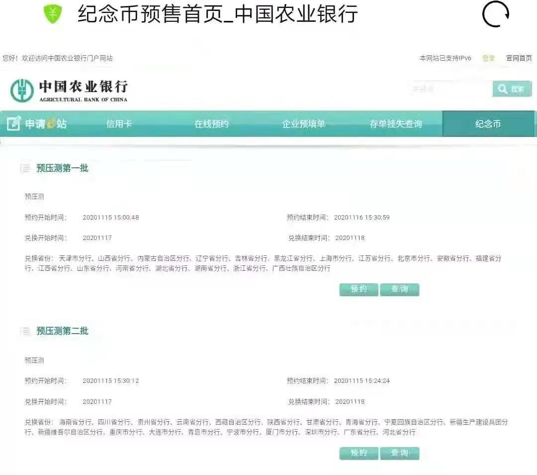 注意了,这次的武夷山币预约是分时分批预约的,不同地区的预约时间段不一样。具体预约时间安排如下: