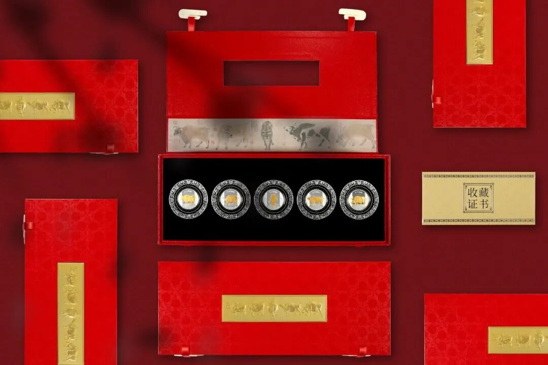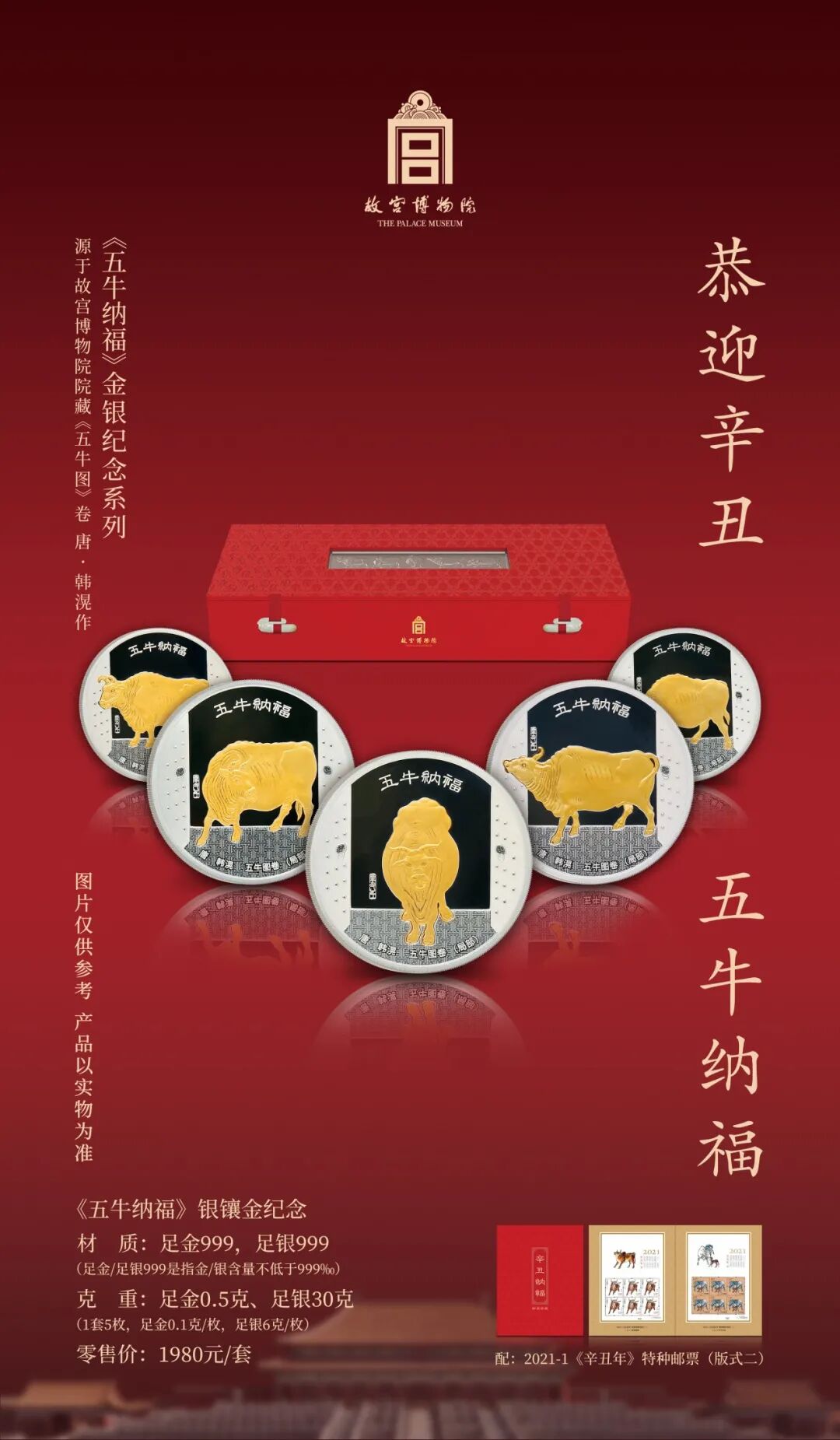 今年过年一起迎福气,五尊祥瑞福牛找回幸福年味。《五牛纳福》纯金纪念与《五牛纳福》银镶金纪念,足金足银精工铸成,还原原作神韵。藏送皆宜,打造辛丑吉庆好礼。