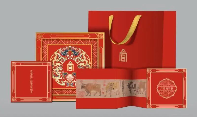 《五牛图》系列贵金属产品以“吉祥纳福”为主题,以故宫博物院院藏唐·韩滉《五牛图》卷为源,《五牛纳福》纯金纪念、《五牛纳福》银镶金纪念、《祥瑞福牛》转运珠三款产品,方寸之间再现国粹之美。