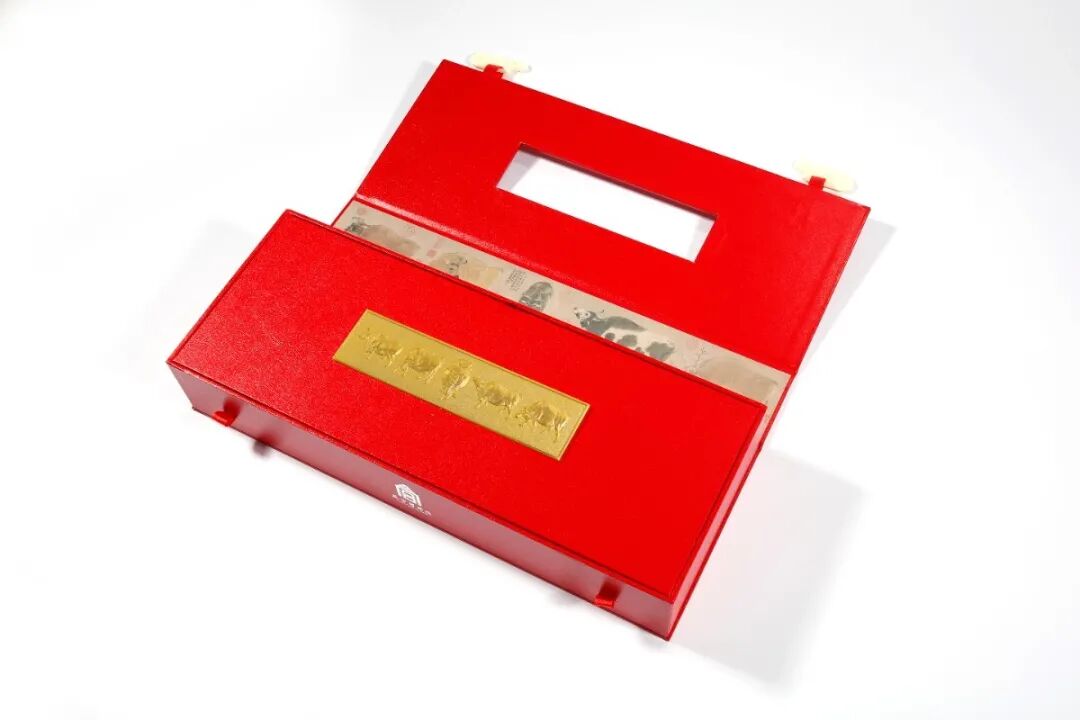 包装采用故宫宫墙红为主色调,妙取太和殿隔扇门三交六椀菱花图案元素,绘成精美的吉祥纹样,象征天地相交、万物生长、国泰民安。