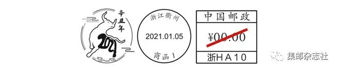 2021年1月5日,浙江省邮政分公司还将推出“2021浙太牛”邮资机宣传戳纪念封套装。