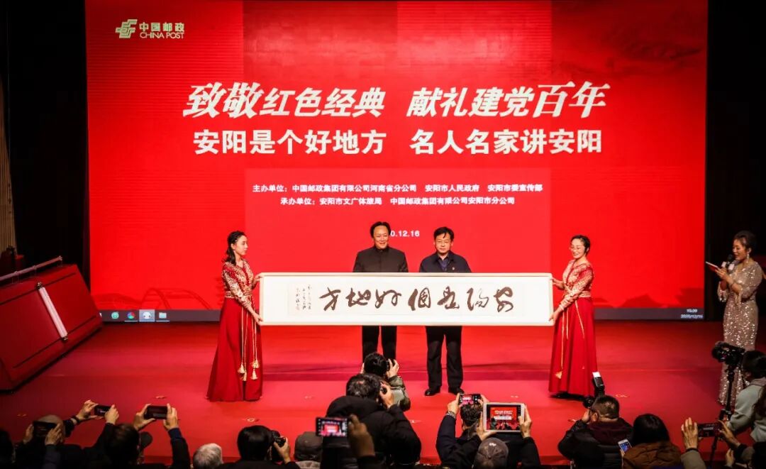 12月16日,河南省邮政分公司,安阳市人民政府、市委宣传部联合举办了“致敬红色经典 献礼建党百年‘安阳是个好地方’名人名家讲安阳”活动,发行“致敬红色经典”邮票册、邀请名家讲述安阳故事、展出稀世珍邮,为广大安阳市民奉献了一场红色集邮文化盛会。