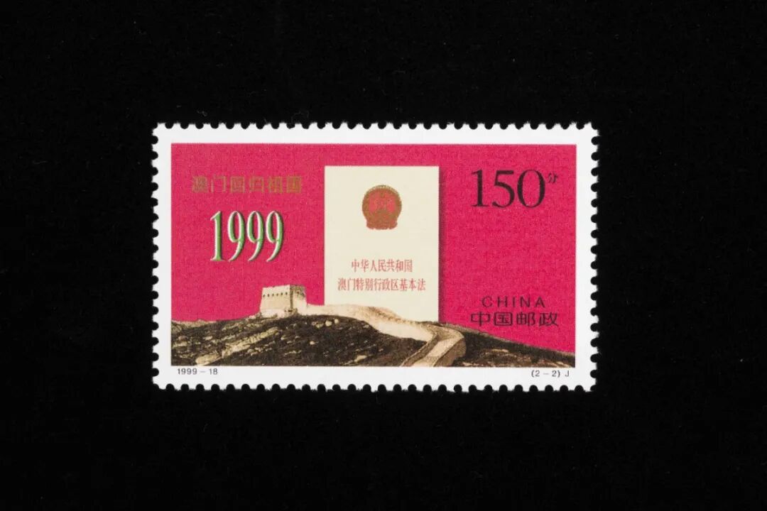 1999年12月20日,我国对澳门恢复行使主权,这是继香港回归祖国后中华民族的又一盛事。这套邮票是由国家邮政局发行,纪念澳门回归系列邮票中的第三套,两枚邮票表现了收回澳门的历史进程,小型张表现了我国解决澳门问题的方针政策和邓小平同志为此作出的历史性贡献。