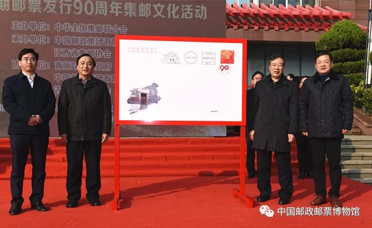 中华全国集邮联合会副会长兼秘书长张玉虎,中国邮政文史中心(中国邮政邮票博物馆)纪委书记、副主任(副馆长)陈剑锋,中国邮政集团有限公司江西省分公司副总经理、江西省集邮协会会长戴书华,吉安市政府副秘书长张志勇共同为活动纪念封揭幕。