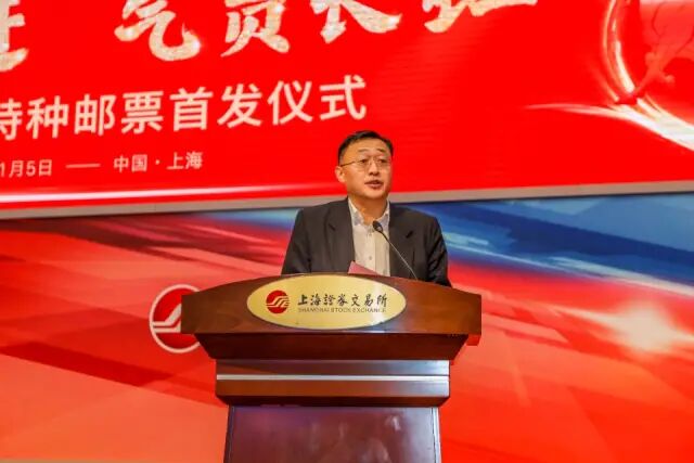 中国邮政集团有限公司上海市分公司副总经理黄来芳宣读邮票发行通告