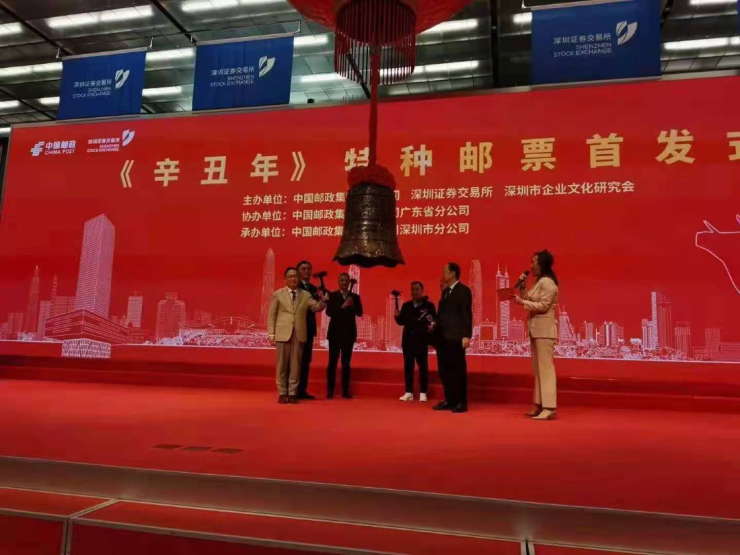 1月5日,《辛丑年》牛年生肖邮票首发仪式在深圳证券交易所上市大厅举行。本次活动由中国邮政集团有限公司、深圳证券交易所、深圳市企业文化研究会联合主办,中国邮政集团有限公司广东省分公司协办,中国邮政集团有限公司深圳市分公司承办。