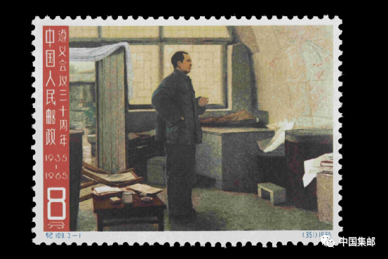 1965年《遵义会议三十周年》纪念邮票发行,全套共三枚。第一、第三枚邮票上毛泽东的身体外貌形象均是遵义会议召开时期毛泽东的身体外貌形象,因而也均标有“遵义会议三十周年1935—1965”字样。
