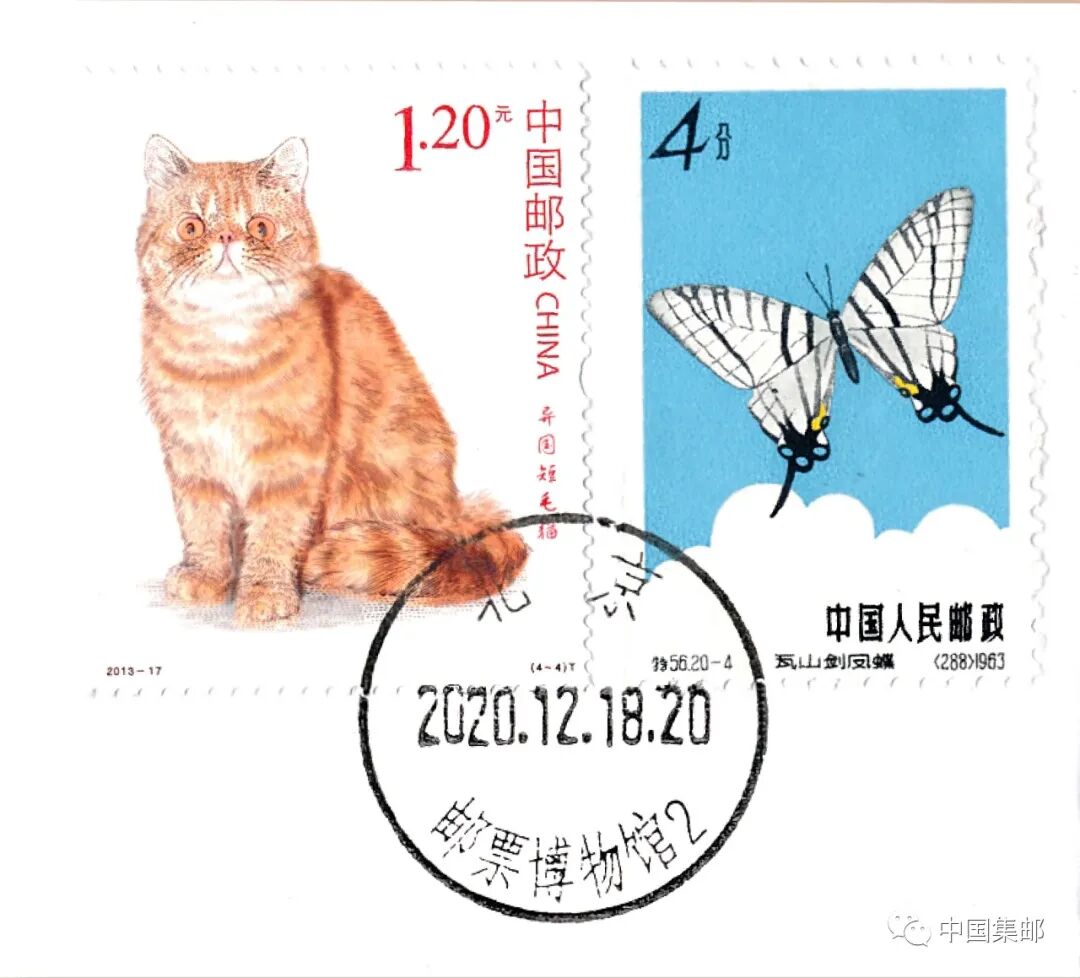 《“耄耋”纪念封》是中国集邮有限公司特为两位大师的见面制作的。选取《邵柏林作品展纪念封》为载体,上贴《猫》(2013年发行)和《蝴蝶》(1963年发行)两枚邮票。其中,《猫》这枚邮票选取了第4枚异国短毛猫,是靳尚谊先生最喜爱的品种。“猫”“蝶”谐音“耄耋”,既象征两位先生的年纪,更寓意福寿安康。