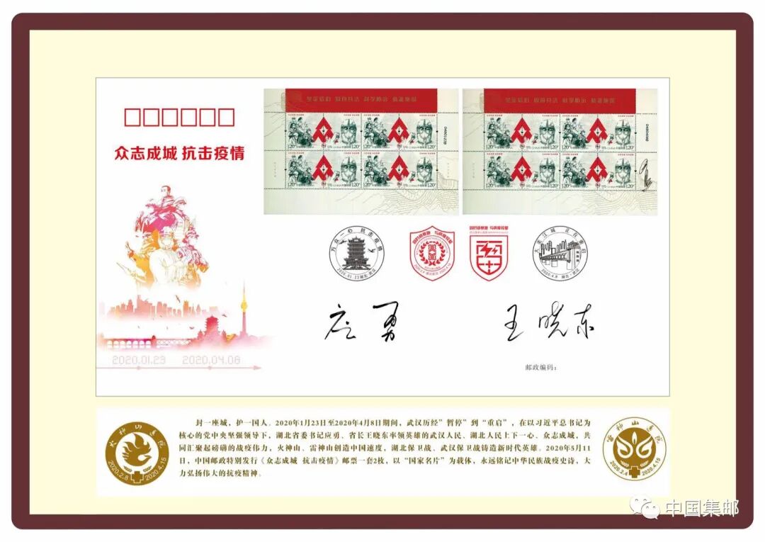2020年5月11日《众志成城 抗击疫情》邮票首发仪式上,中国邮政集团有限公司党组书记、董事长刘爱力向中国红十字会总会捐赠抗击疫情慈善款,党组副书记、总经理张金良向奋战在抗击疫情一线的医务工作者代表捐赠邮折。中国邮政将捐赠邮票和邮品收入共计4300万元捐献给中国红十字会总会和奋战在抗击疫情一线的医务工作者,用于抗击疫情工作。这是历年来中国邮政发行抗疫救灾邮票捐赠总额最高的一次。